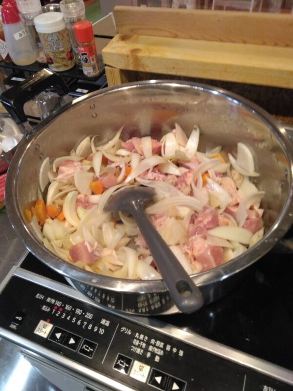 材料を調理して、