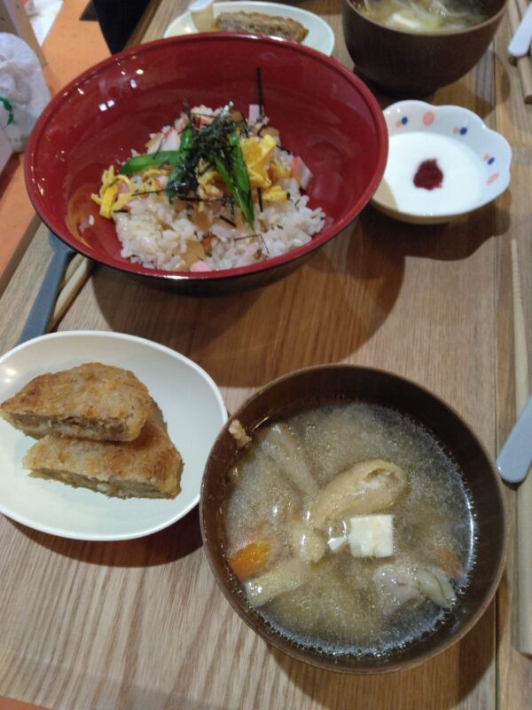 中央区の就労継続支援B型事業所のあまてらすでは、事務所内でちらし寿司をふるまいました。